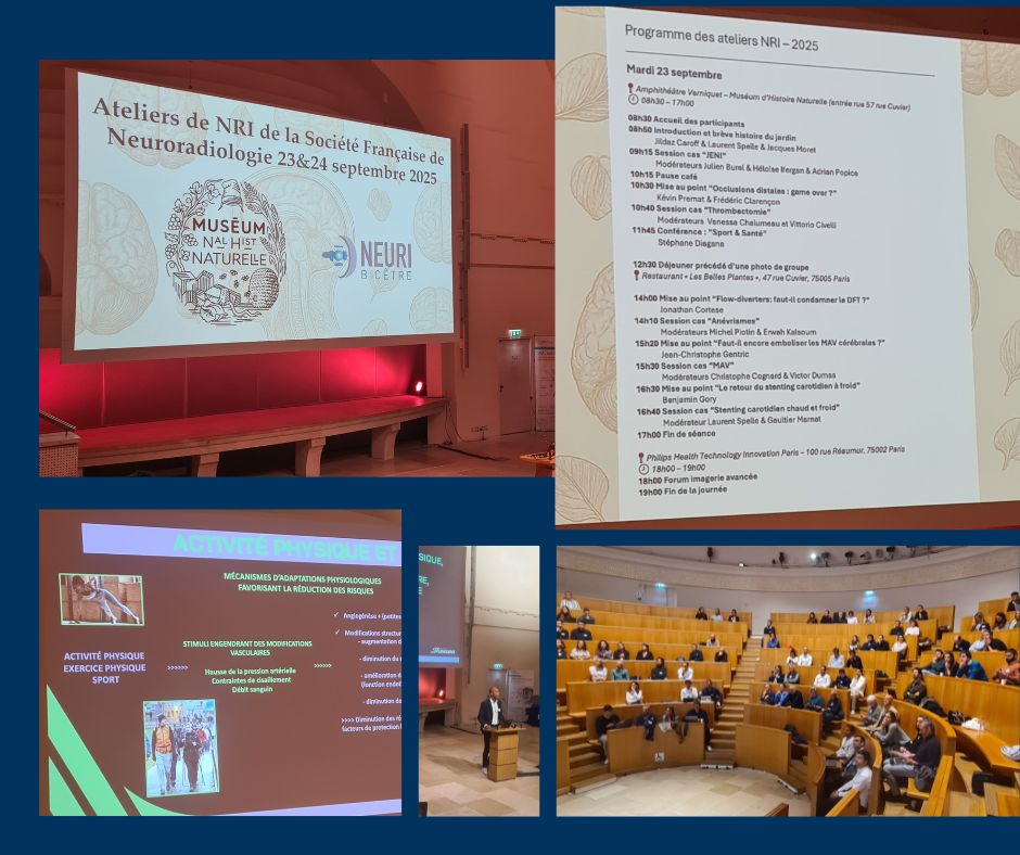 La Présidente de NEURO MAV France, Nathalie Pigoreau, était invitée le 23 septembre à Paris à la journée « Les ateliers de la NRI » (Neuroradiologie interventionnelle), ouverte aux médecins membres de la SFNR (Société Française de Neuroradiologie).