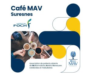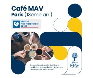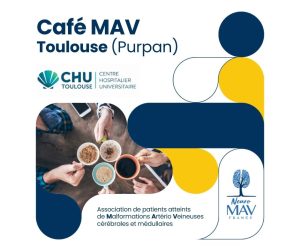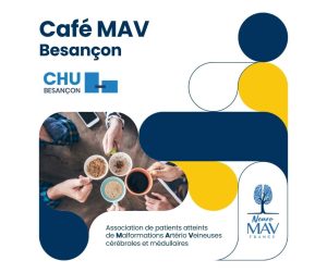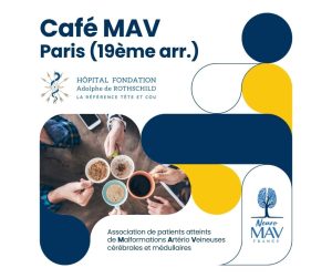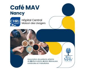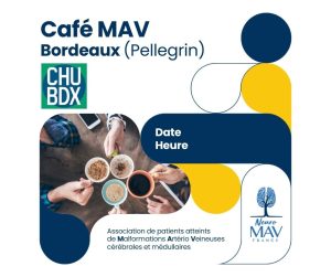 Participez aux cafés MAV près de chez vous !Ils sont ouverts à tous les patients ayant une MAV ou Fistule durale, cérébrale ou médullaire, ou proches de patients. Organisés en présentiel au sein d’un espace mis à disposition par un Centre de compétences partenaire, ces moments sont un lieu d’échange convivial, dans le respect du parcours de chacun, organisés par un bénévole de l’association, et sans présence de personnel soignant.
