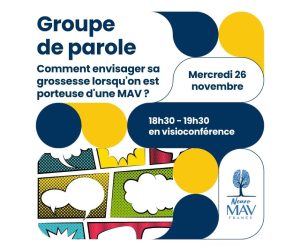 Comment envisager sa grossesse lorsqu’on est porteuse d’une MAV ? | Mercredi 26 novembre | 18h30 à 19h30 | JE PARTICIPE |